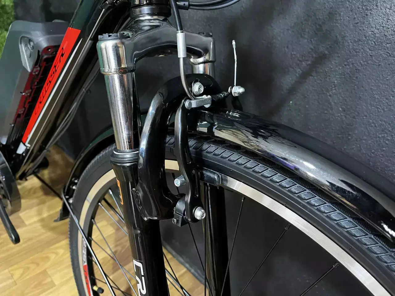 Електричний велосипед на алюмінієвій рамі з 28 колесами на задньому електроприводі. Потужність мотор-колеса 500W. Батарея міцно і надійно кріпиться до рами, блокується за допомогою ключа. В батарею інтегровано контролер, це зменшує кількість проводів і додаткових кріплень, боксів, сумок і т.і. Наружна частина корпусу контролера виготовлена з алюмінію, що дає максимальне охолодження. Набір і весь велосипед виглядає гармонійно, збито.